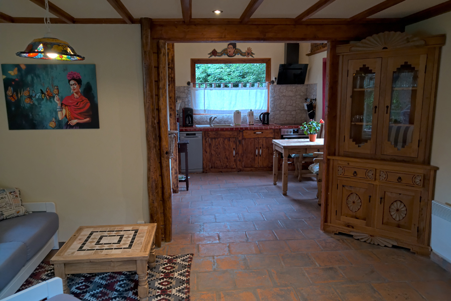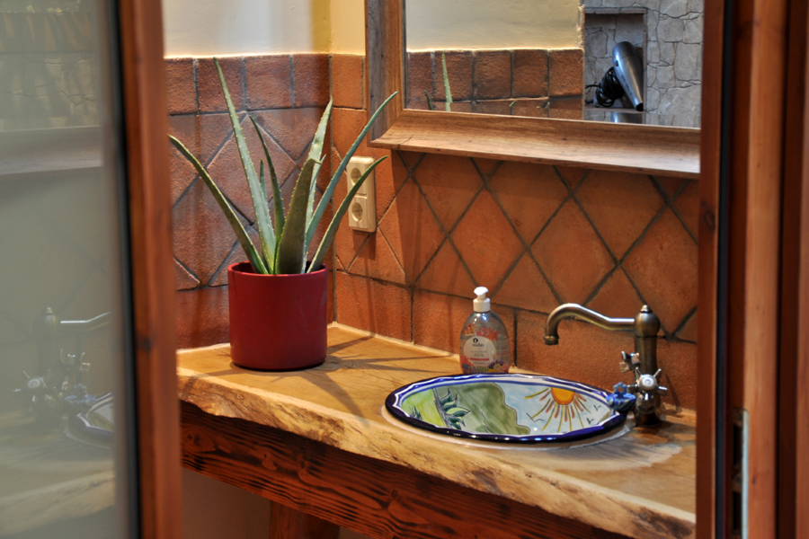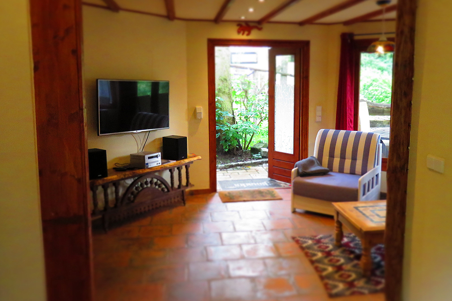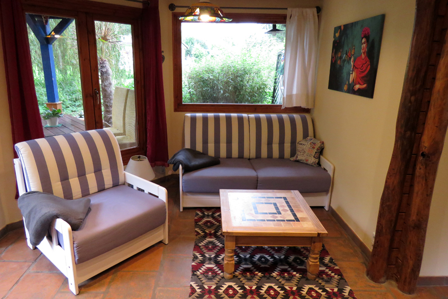 Der Bungalow Cabaña La Paz ist geschmackvoll in verschiedenen Stilen (amerikanisch, mexikanisch, mediterra) eingerichtet und liegt im hinteren Teil des Grundstücks. Somit bietet er auch genügend Platz für Privatsphäre und eignet sich für 1–2 Personen.