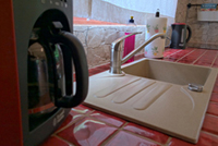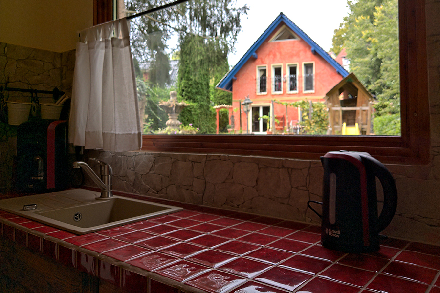 Selbstverständlich ist dieser mit einer Küche ausgestattet, die sich ideal für Selbstversorger eignet: Herd, Mikrowelle, Kaffeemaschine, Wasserkocher, Toaster, Geschirr & Besteck.